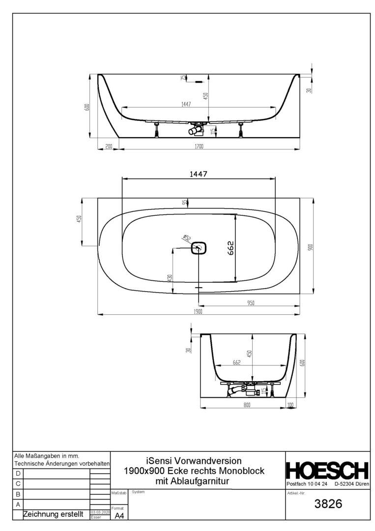 Breite 900 mm