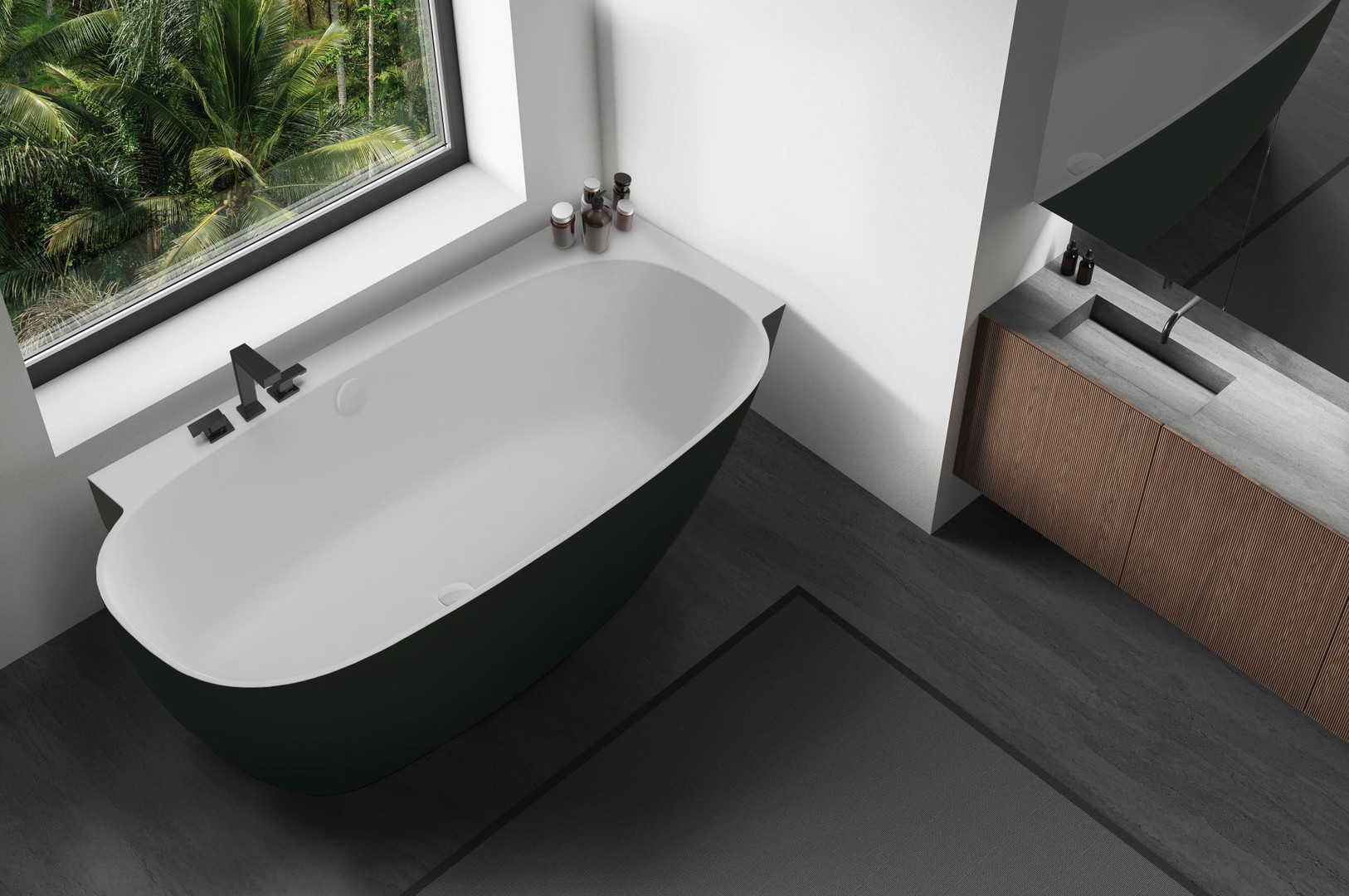 Hoesch Freisteh-Badewanne LABRILLIANTE Überlaufgarnitur Combi Plus, schwarz-weiß, 180x80cm, rechts
