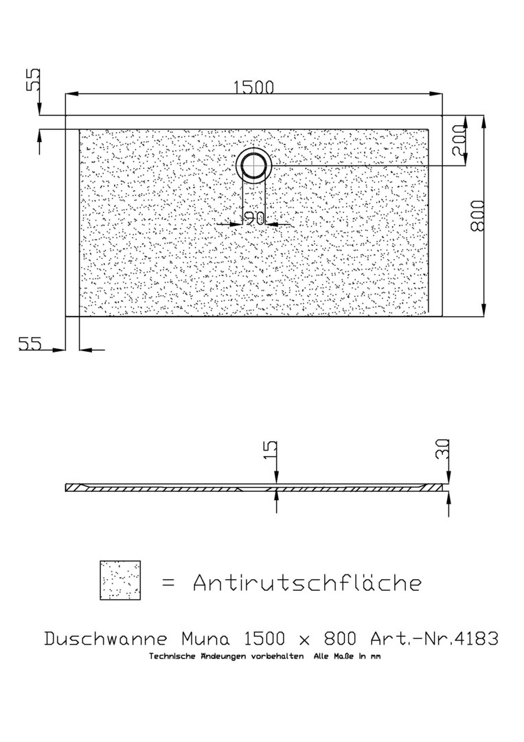 Hoesch Mineralguss-Duschwanne Muna 150 x 80 x 3 cm, weiss, Solique, Antirutsch