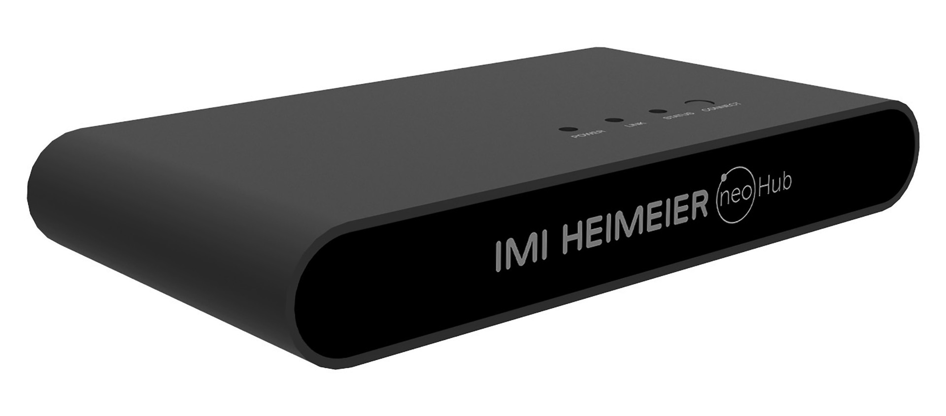 IMI HEIMEIER neoHub Smart Gateway G3, Enthaltenes Ethernet-Patchkabel und 230 V Netzadapter inkl. 2,1 mm DC Klinkensteckeranschluss für 6-12 V DC Ausgang im Lieferumfang enthalten. Fernsteuerung aller neoStat- und neoAir-Geräte von iOS- oder Android-Gerät.