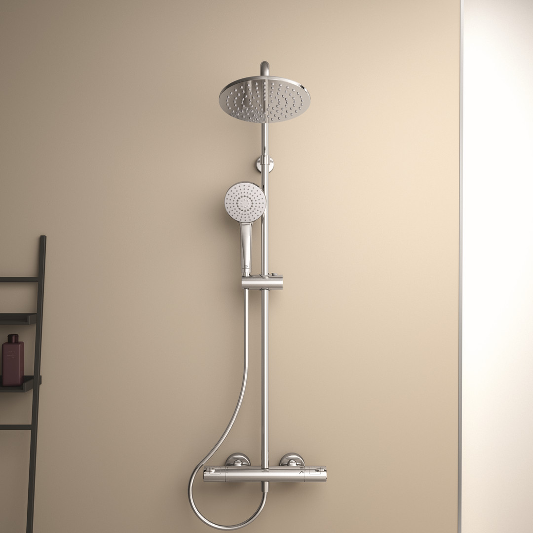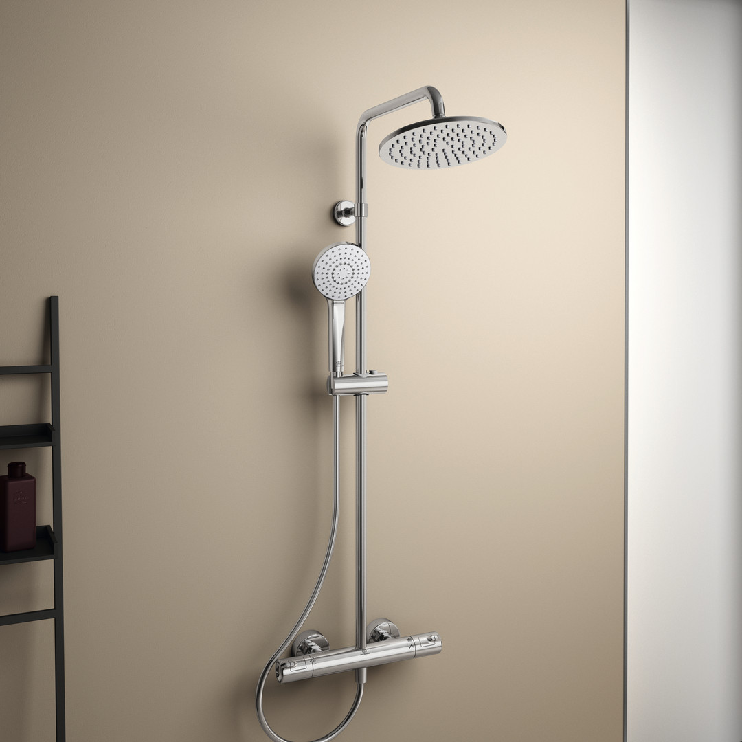 Ideal-Standard Duschsystem Ceratherm T 50 Handbrause 110 mm, mit Brausethermostat, Kopfbrause rund, verchromt W319228