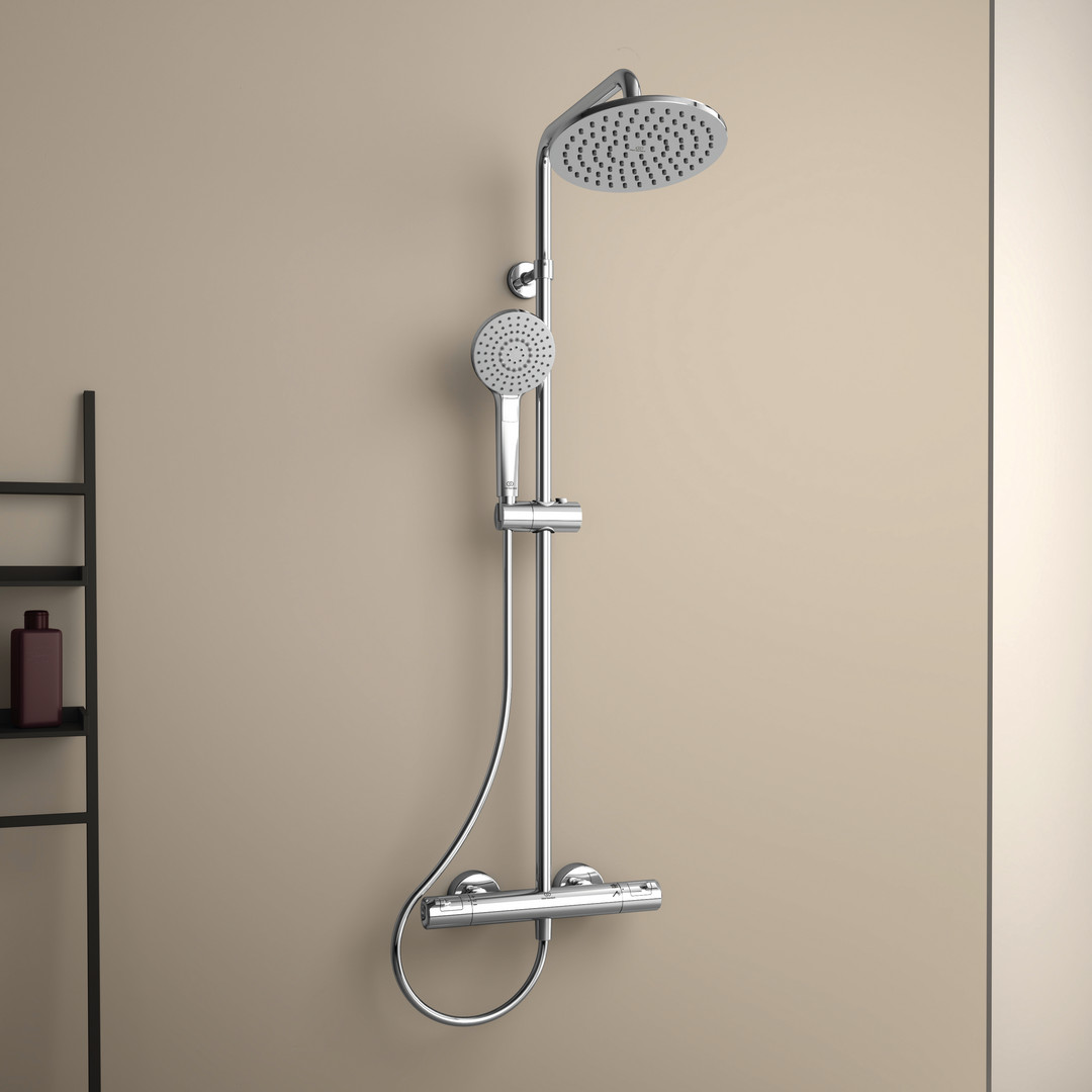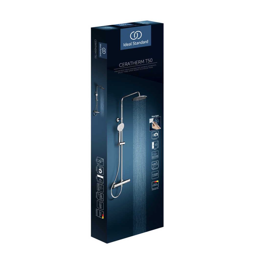 Ideal-Standard Duschsystem Ceratherm T 50 Handbrause 110 mm, mit Brausethermostat, Kopfbrause rund, verchromt