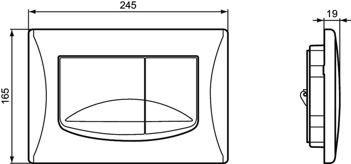 für 2-Mengen-Spültechnik, für ProSys WC-Spülkästen der Baureihen 150/120/80, zur Betätigung von vorn oder von oben, ABS-Kunststoff mit federgelagerten Tasten, Betätigungskraft unter 20 N, mit Montagerahmen und Montagezubehör, Verbinder- und Betätigungsstangen für werkzeuglose Schnellverstellung vorbereitet
