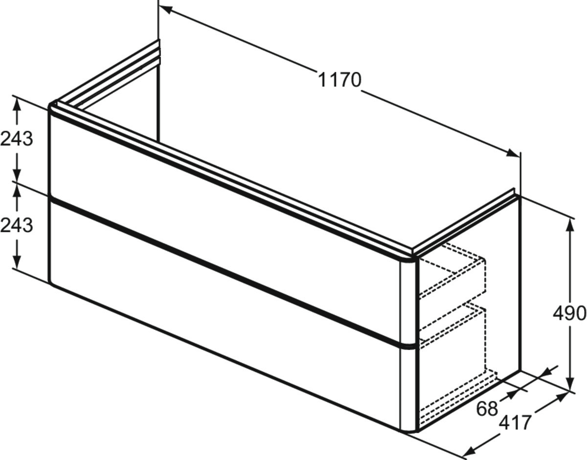 Ideal-Standard Waschtisch-Unterschrank Adapto 2 Auszüge, ohne Waschtischplatte, 117 x 41 x 49 cm, anthrazit matt