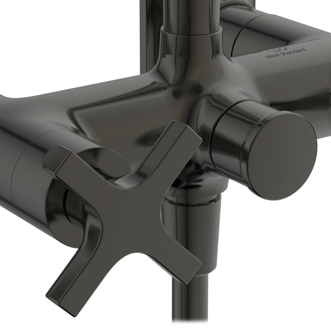 Ideal-Standard Zweigriff-Duschsystem Joy Neo mit Einhebel-Brausearmatur, Kreuzgriff, Kopfbrause rund, magnetic grey