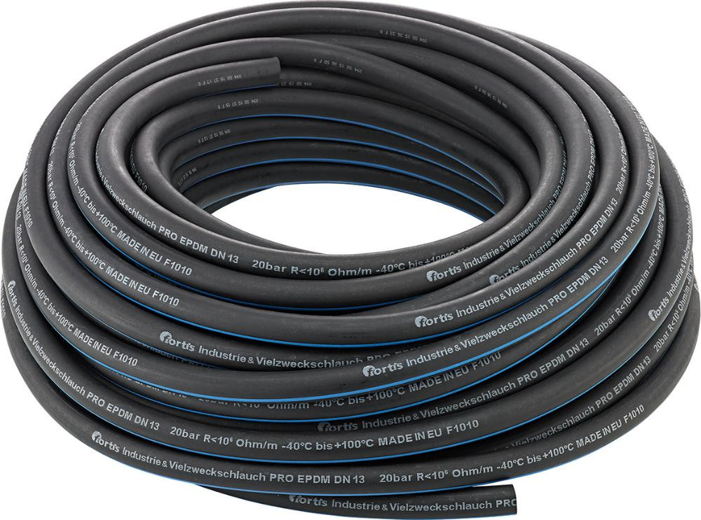 Industrie-und Vielzweck schlauch PRO, EPDM, schwarz/blau, 13x4,0mm, 40m FORTIS 4063726008411