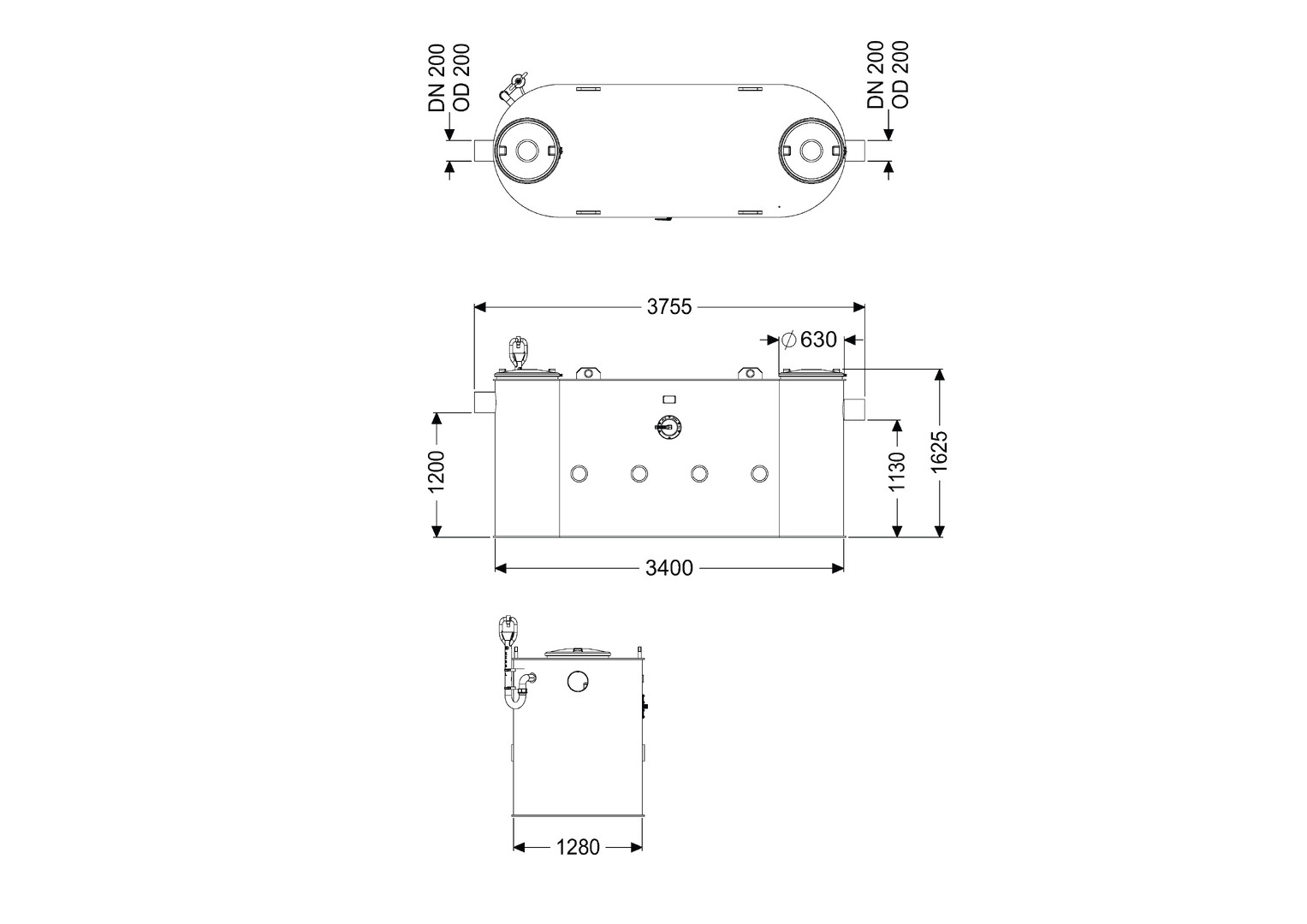 | Nenndurchmesser alle Anschlüsse | DN 200 |