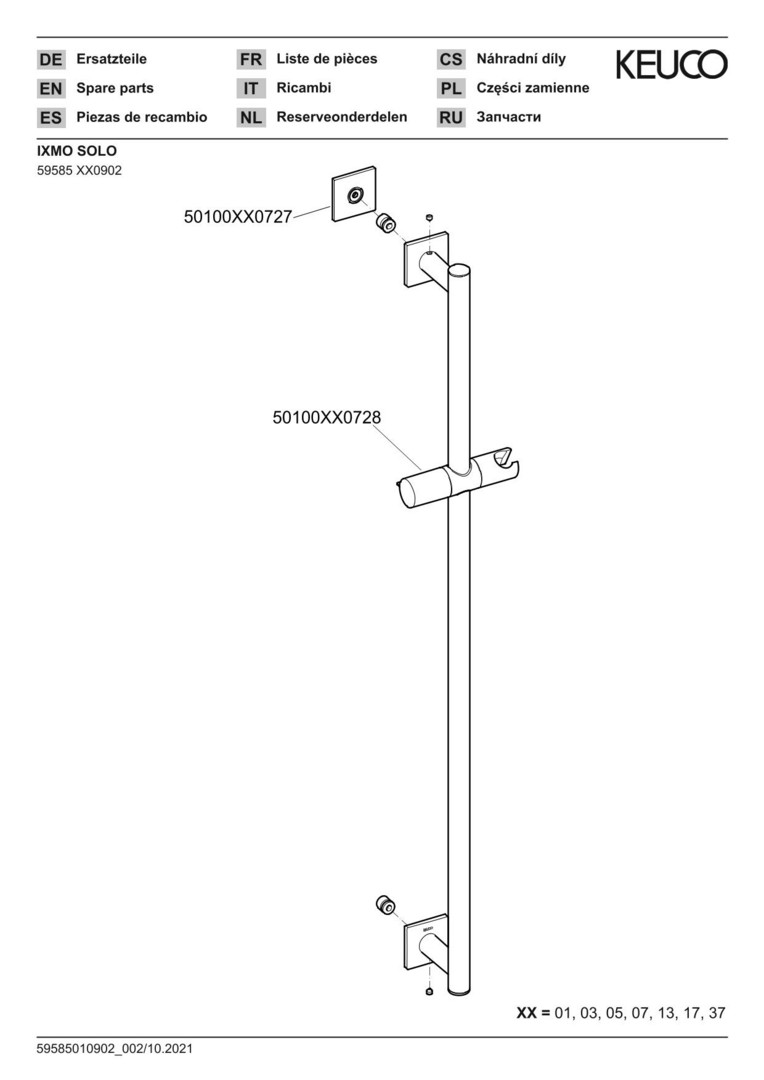 KEUCO Brausestange IXMO verchromt, Höhe 855mm, Rosetten eckig