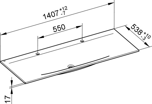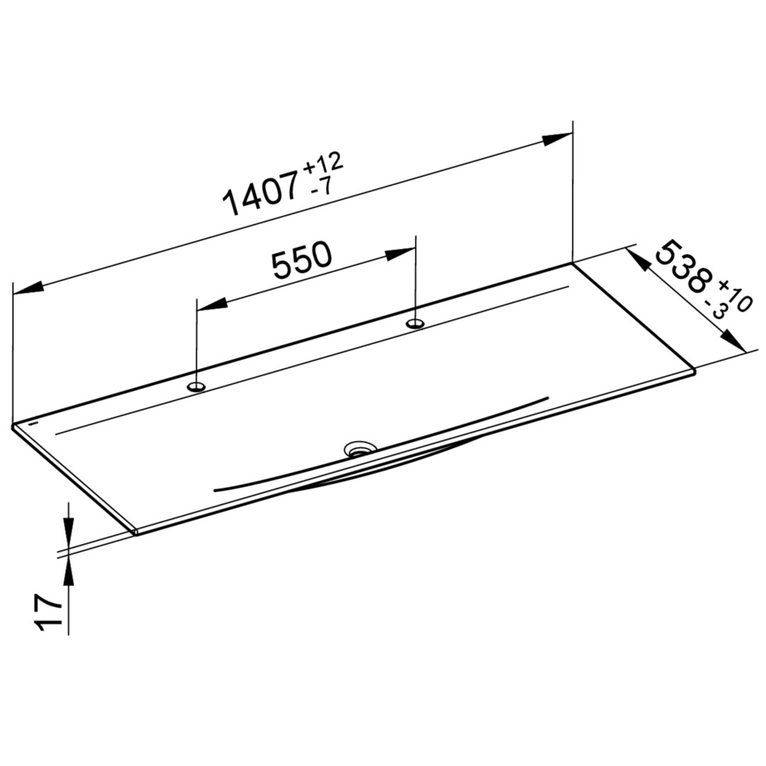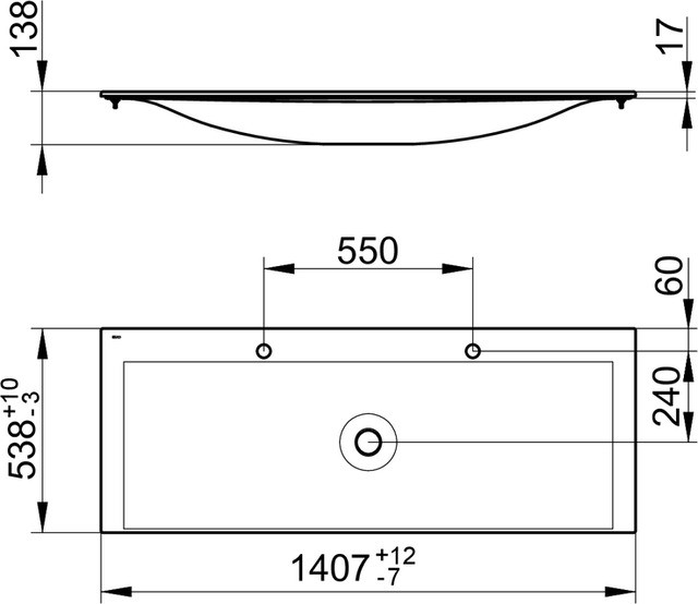 KEUCO Doppelwaschtisch Edition 11 140,7x1,7x53,8cm, 2x1 Hahnloch, ohne Überlauf, weiß