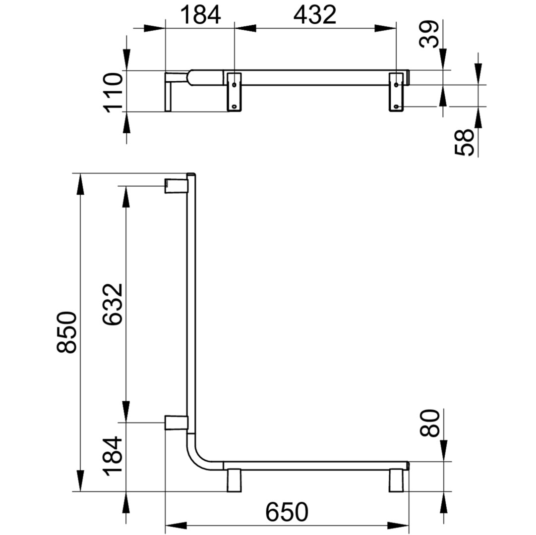KEUCO Dusch-/Wannenhandlauf AXESS 650 x 850 mm, Aluminium silber-eloxiert/verchromt W359778