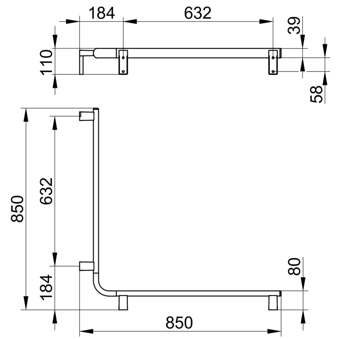 KEUCO Dusch-/Wannenhandlauf AXESS 650 x 850 mm, Aluminium silber-eloxiert/verchromt W359778