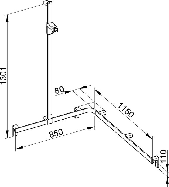 KEUCO Duschhandlauf AXESS Aluminium silber-eloxiert/verchromt, 850/850 mm, mit Brausestange, linke Ausführung W340966