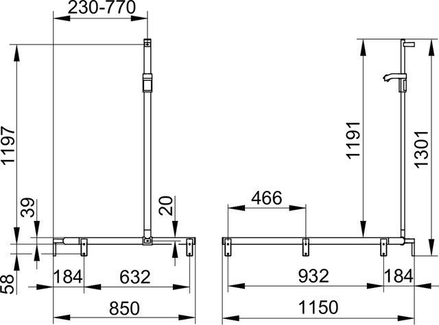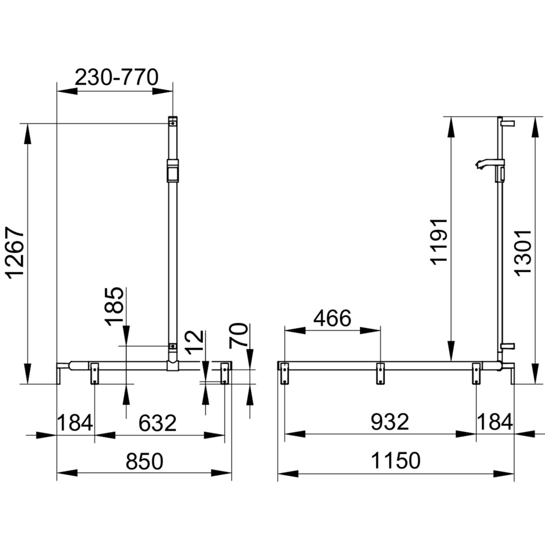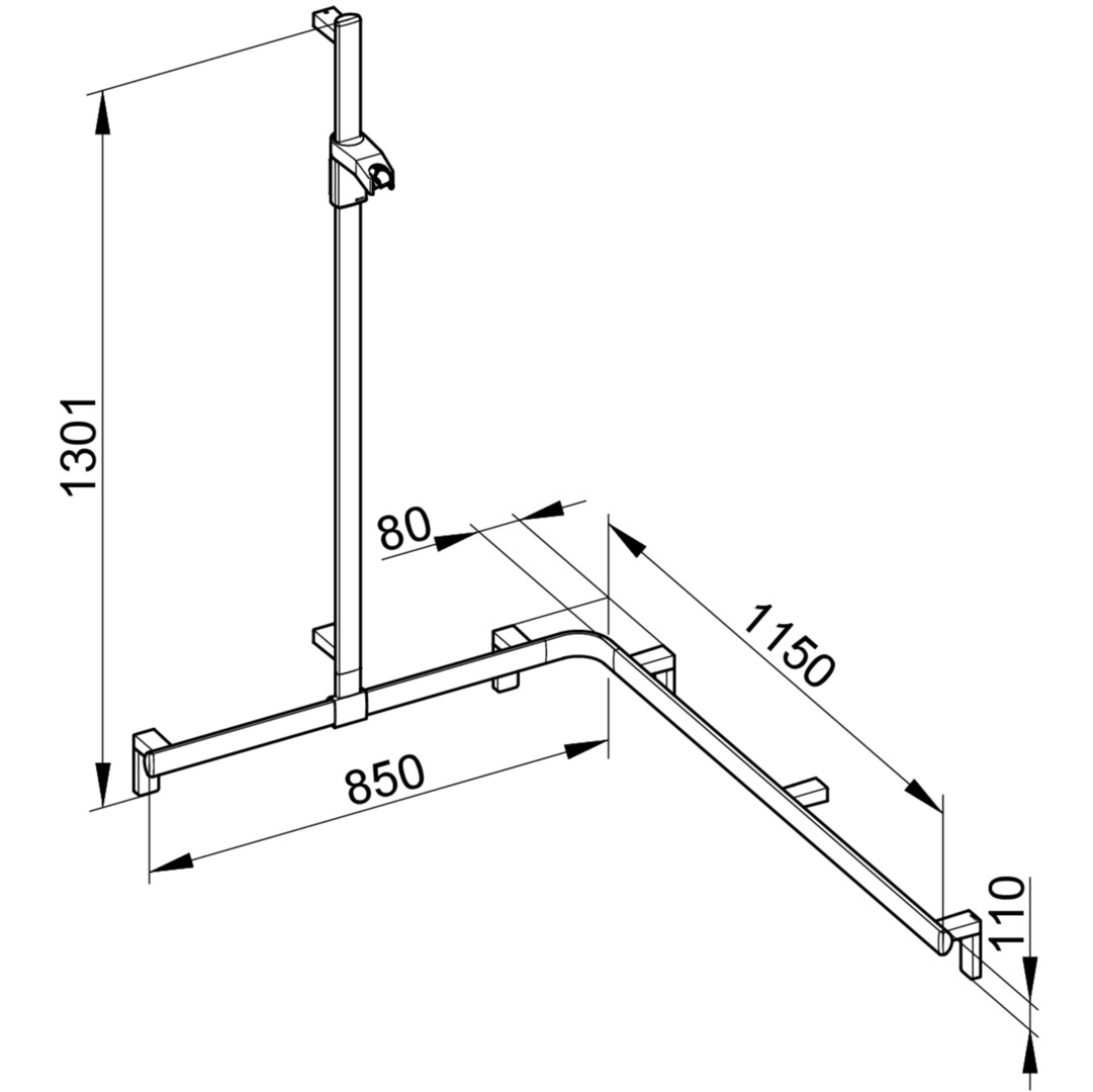 mit Brauseschieber, Brausestange vor Montage frei positionierbar, Höhe 1301 mm, Belastbarkeit 115 kg, mit 2x Befestigungsset Nr. 1
