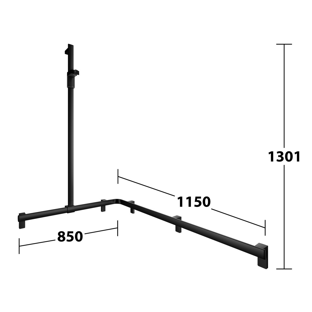 KEUCO Duschhandlauf AXESS schwarz matt, 1150/850 mm, mit Brausestange, linke Ausführung