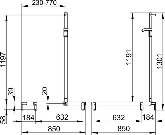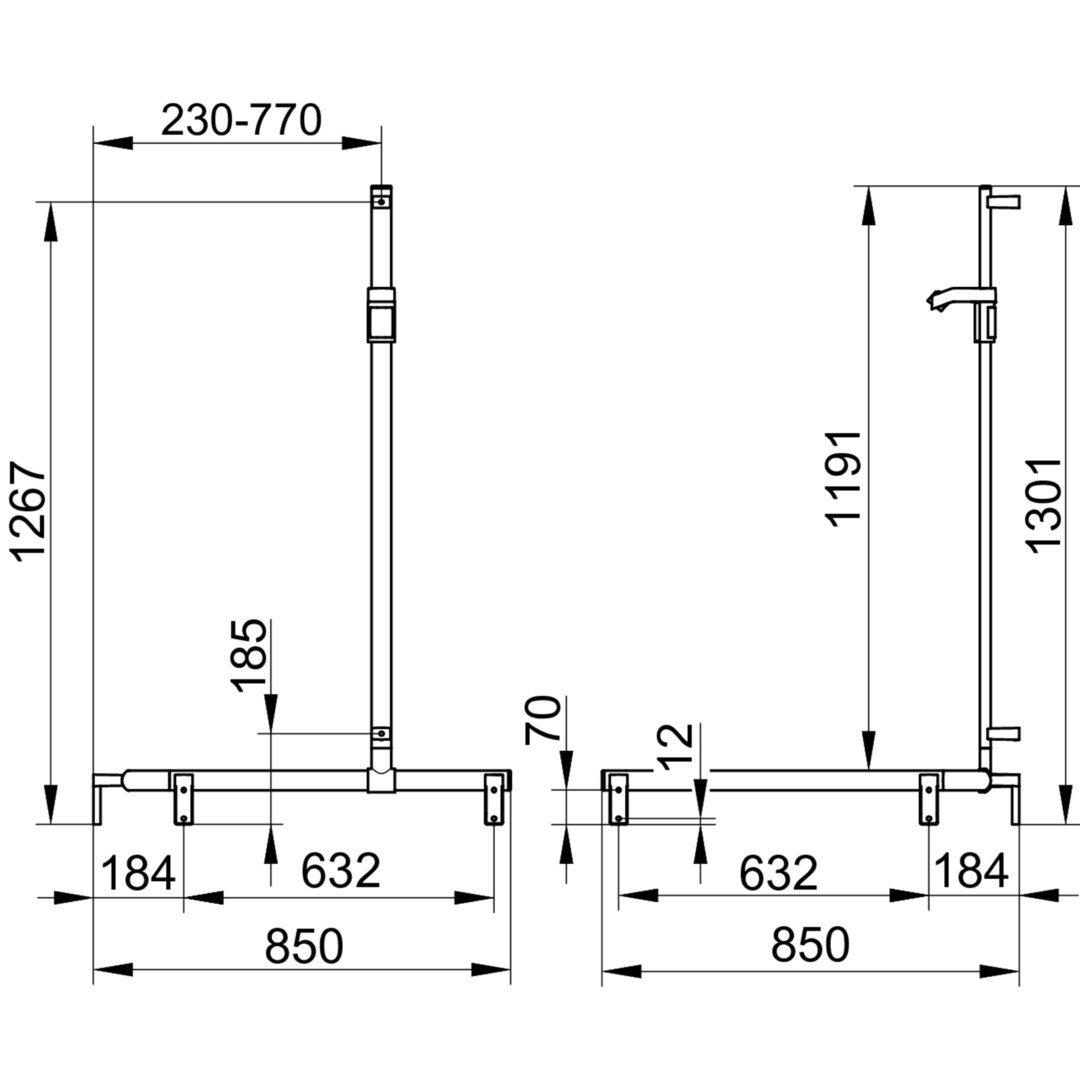 mit Brauseschieber, Brausestange vor Montage frei positionierbar, Höhe 1301 mm, Belastbarkeit 115 kg, mit 2x Befestigungsset Nr. 1