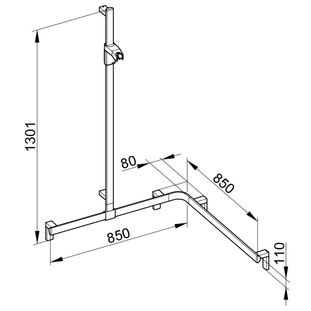 KEUCO Duschhandlauf AXESS Aluminium silber-eloxiert/verchromt, 850/850 mm, mit Brausestange, linke Ausführung W340966