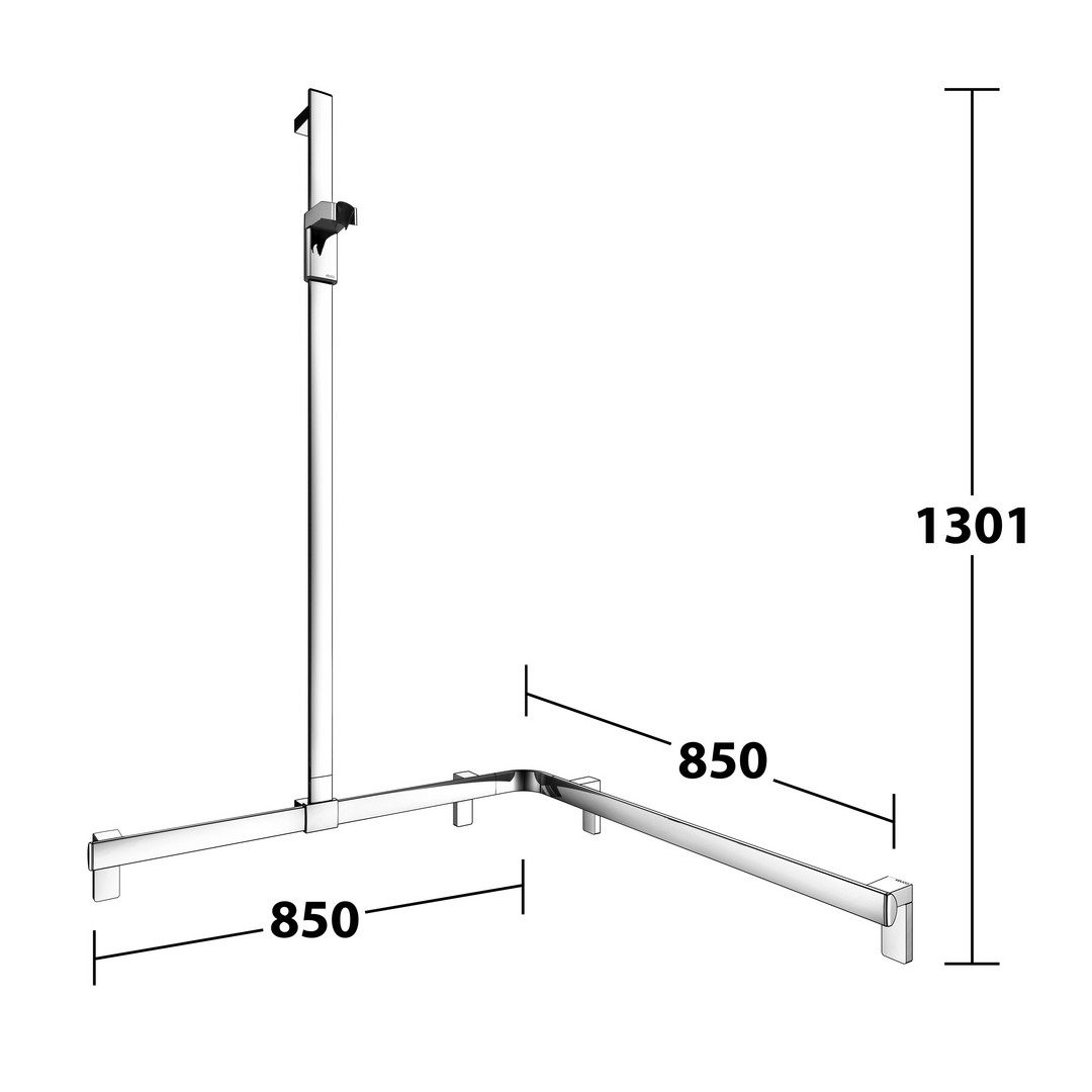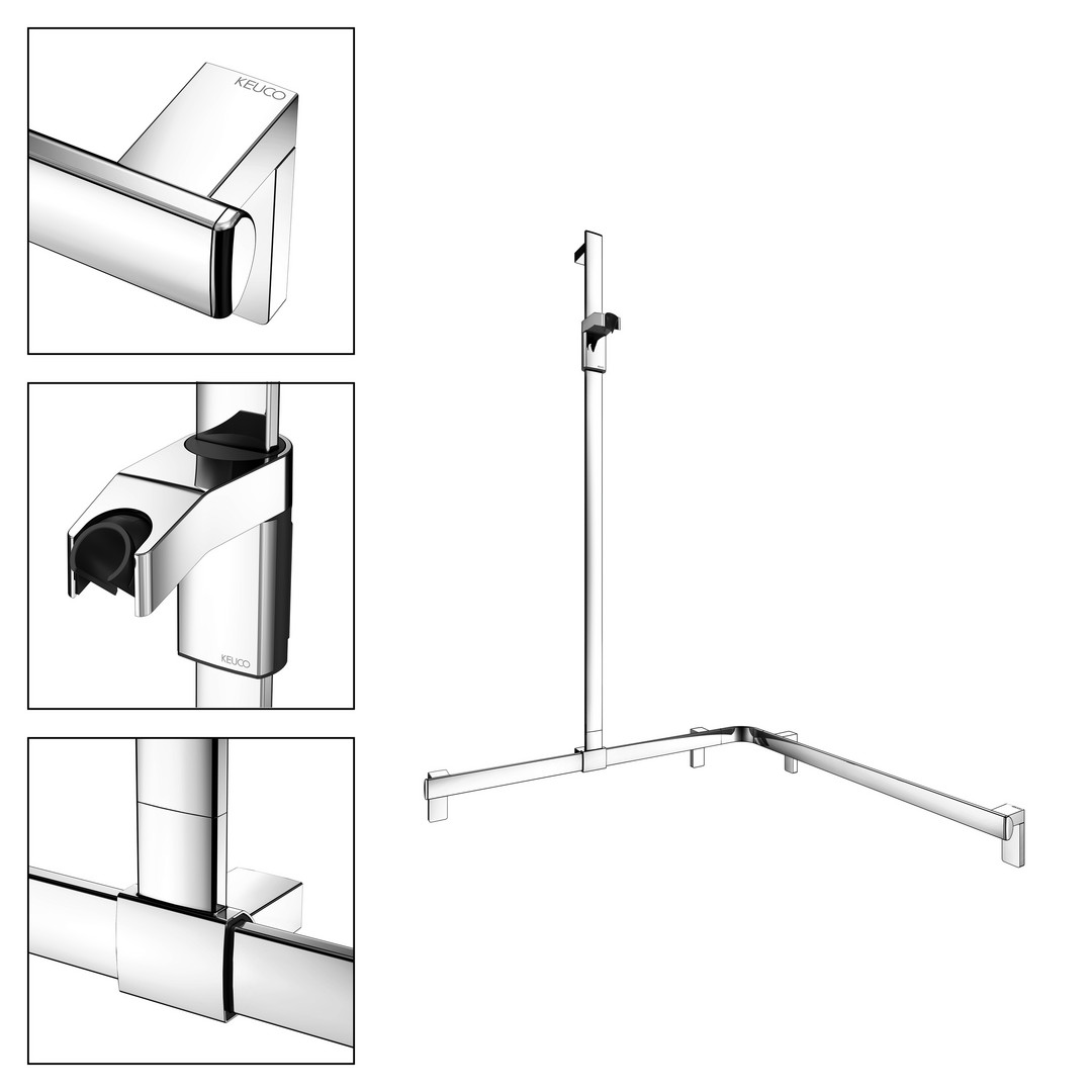 KEUCO Duschhandlauf AXESS verchromt, 850/850 mm, mit Brausestange, linke Ausführung