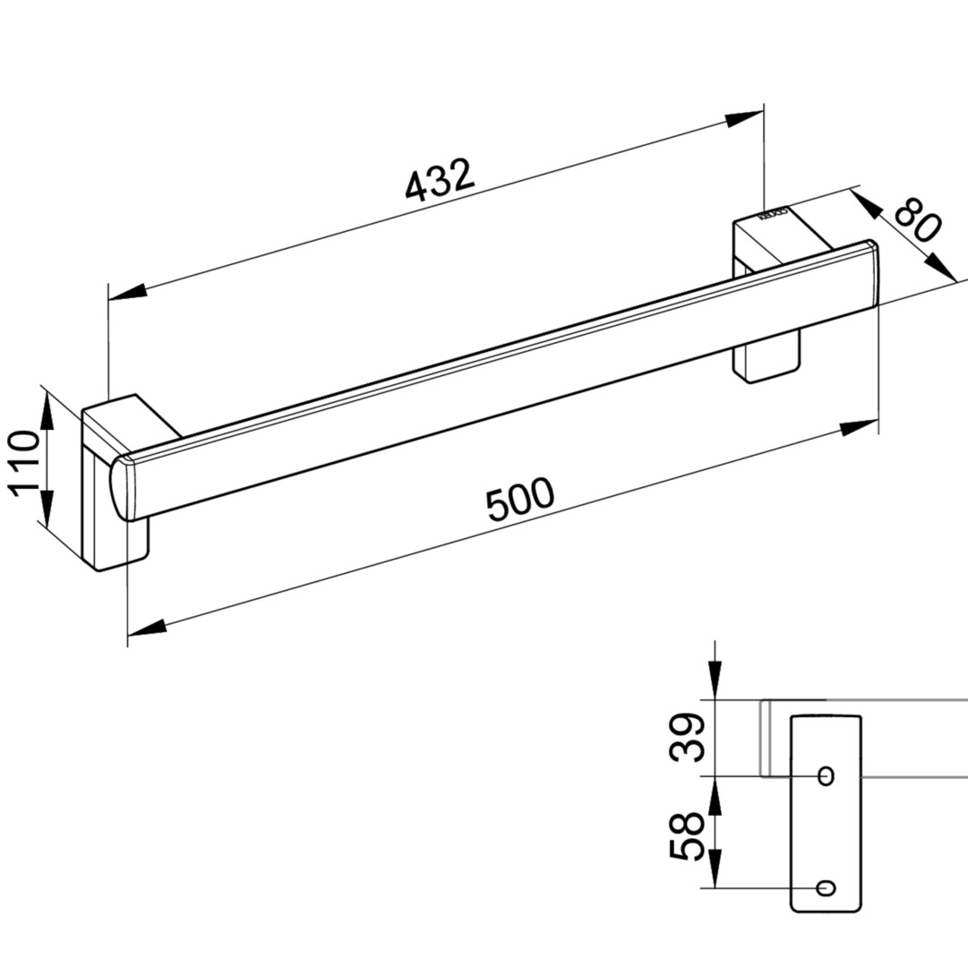 KEUCO Haltegriff AXESS 500 mm, Aluminium silber-eloxiert/verchromt W359738