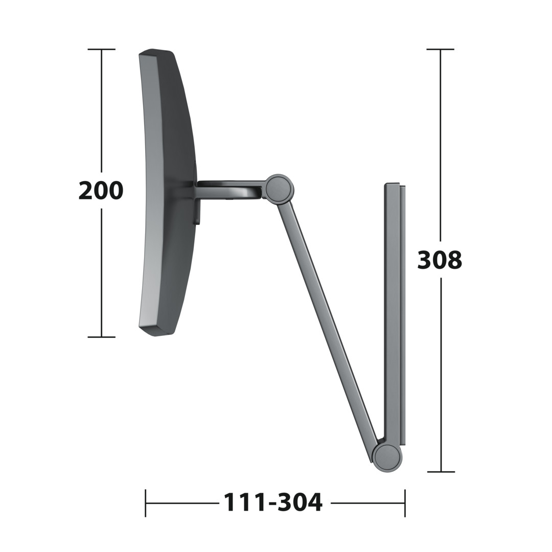 Wandmodell, eckig, an dreidimensional verstellbarem Schwenkarm, Spiegel einseitig, Vergrößerungsfaktor x 5