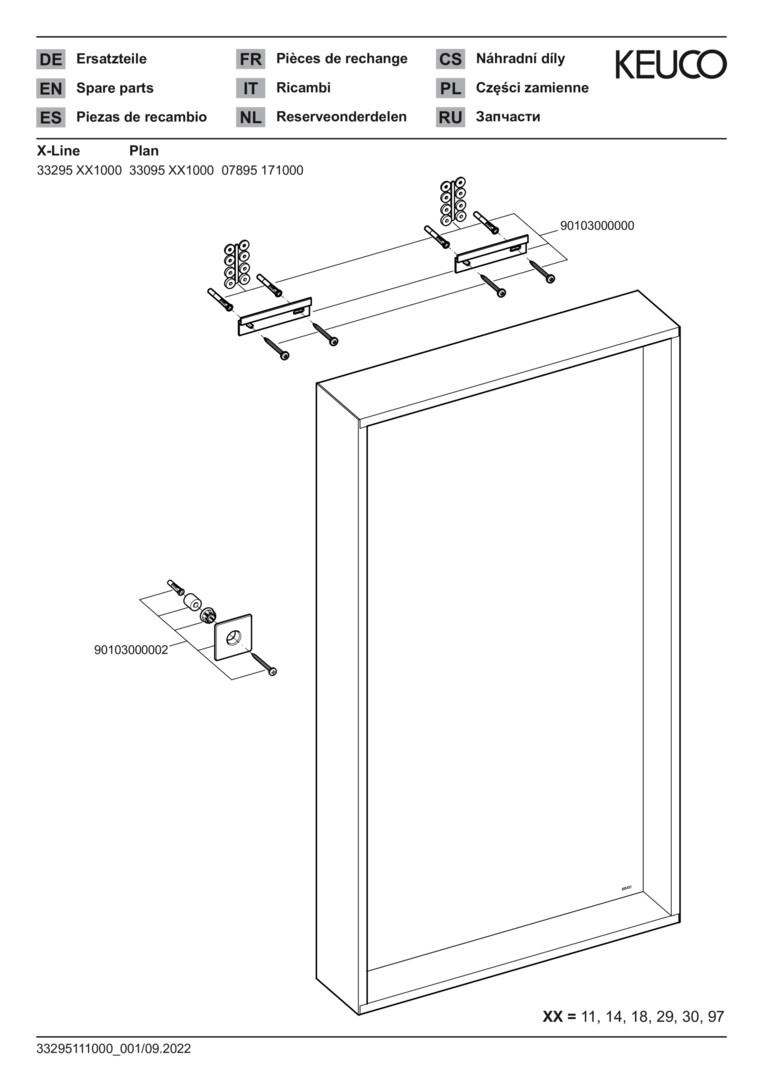 KEUCO Kristallspiegel X-Line 460 x 850 x 105 mm, Inox, mit umlaufendem Rahmen, lackiert W360956