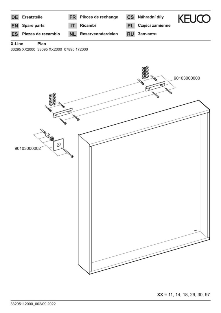 KEUCO Kristallspiegel X-Line 460 x 850 x 105 mm, Inox, mit umlaufendem Rahmen, lackiert W360956