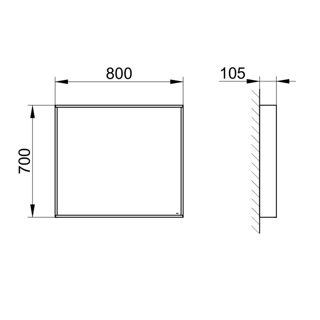 KEUCO Kristallspiegel X-Line 800 x 700 x 105 mm, Anthrazit, mit umlaufendem Rahmen, lackiert