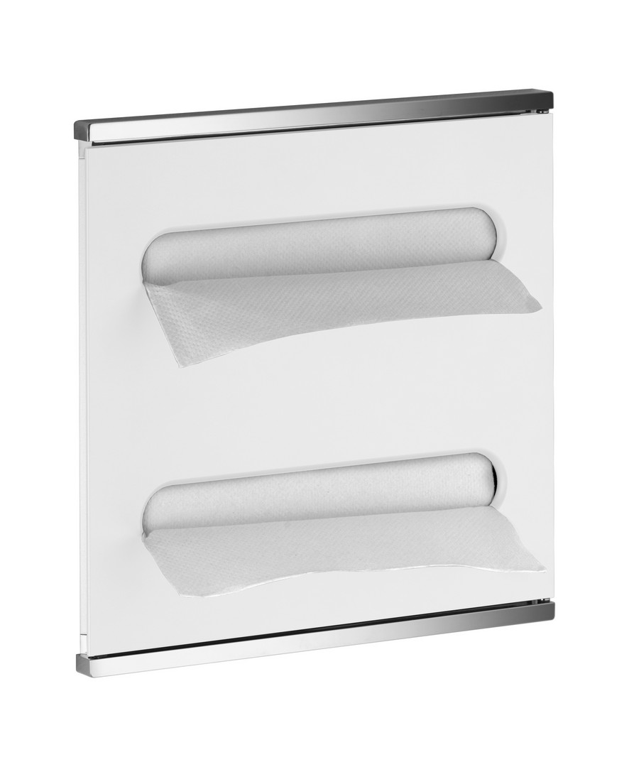 Wandmontage Unterputz, für gefalzte Papiertücher (z-Faltung) geeignet (250 x 230 mm), Betätigung von vorne, Befüllung durch abschließbare Fronttür, Einbaukorpus aus verzinktem Stahlblech, Einbautiefe 125 mm, verdeckte Befestigung, mit Befestigungs-Set