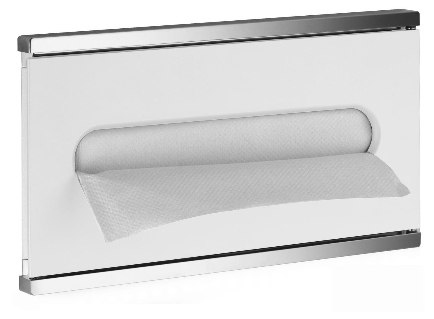 Wandeinbaumontage Unterputz, für gefalzte Papiertücher (z-Faltung) geeignet (250 x 230 mm), Betätigung von vorne, Befüllung durch abschließbare Fronttür, Einbaukorpus aus verzinktem Stahlblech, Einbautiefe 125 mm, verdeckte Befestigung, mit Befestigungs-Set