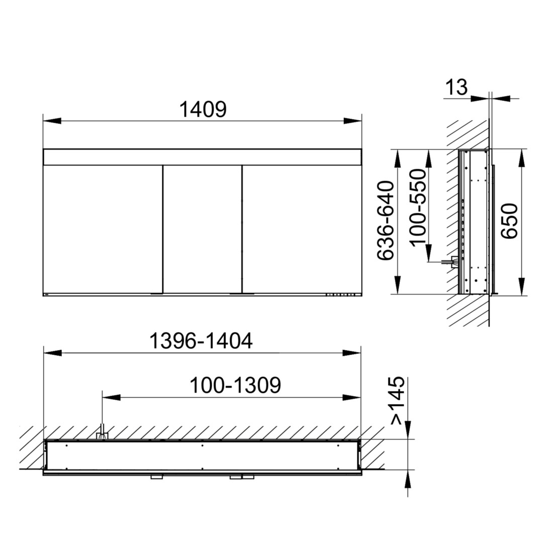 KEUCO Spiegelschrank Edition 400 DALI 141x65x15,4cm, 3-türig, 52 W, Wandeinbau, Spiegelheizung W395855