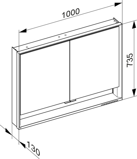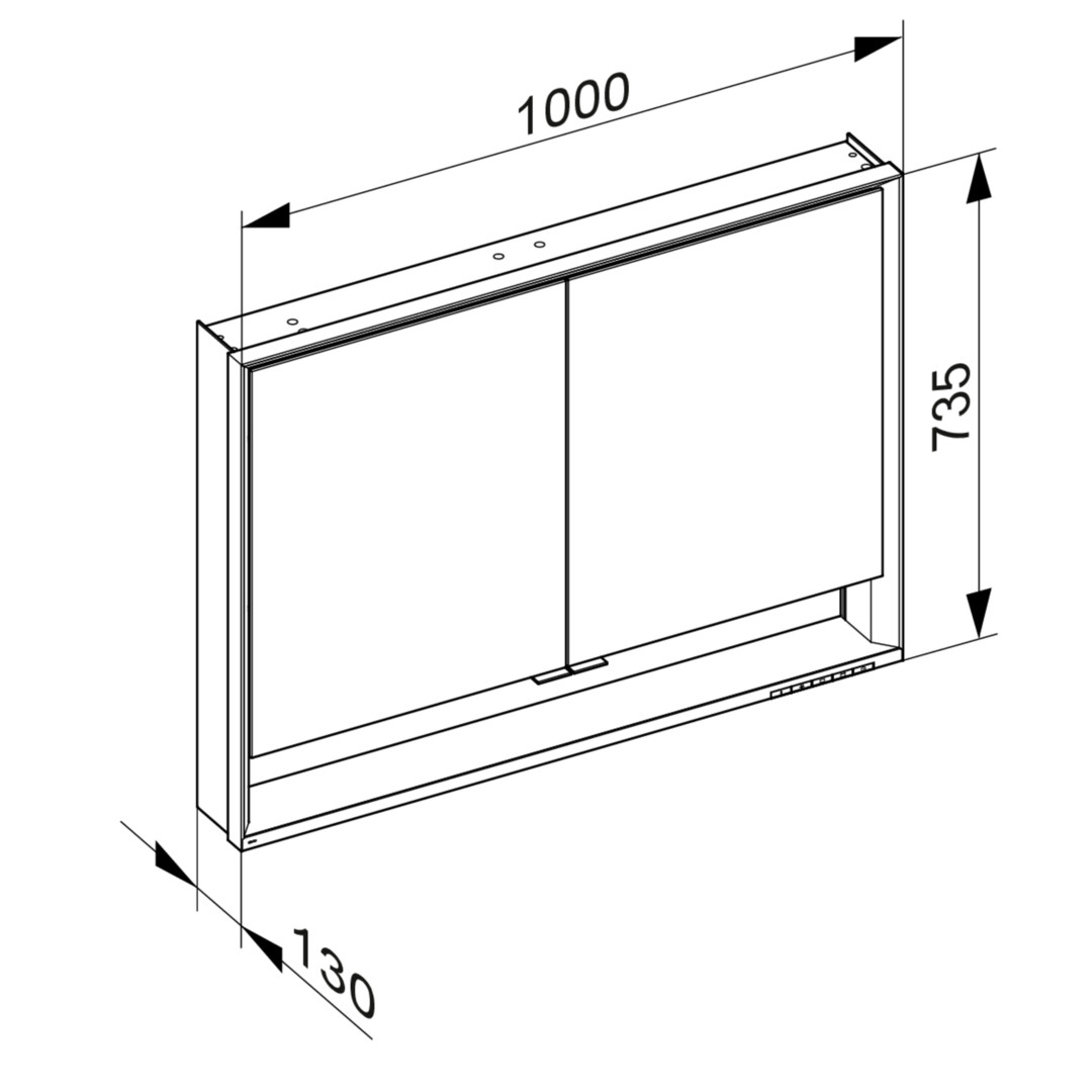 KEUCO Spiegelschrank kurze Türen Royal Lumos 100 x 73,5 x 13 cm, mit Ablagefach DALI, Wandvorbau, 2-türig, silber-eloxiert