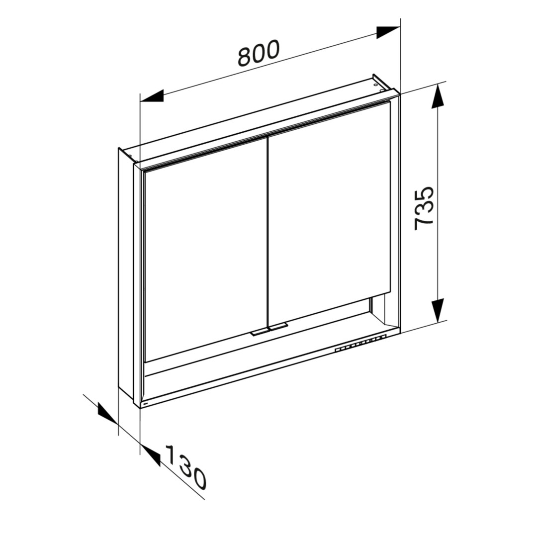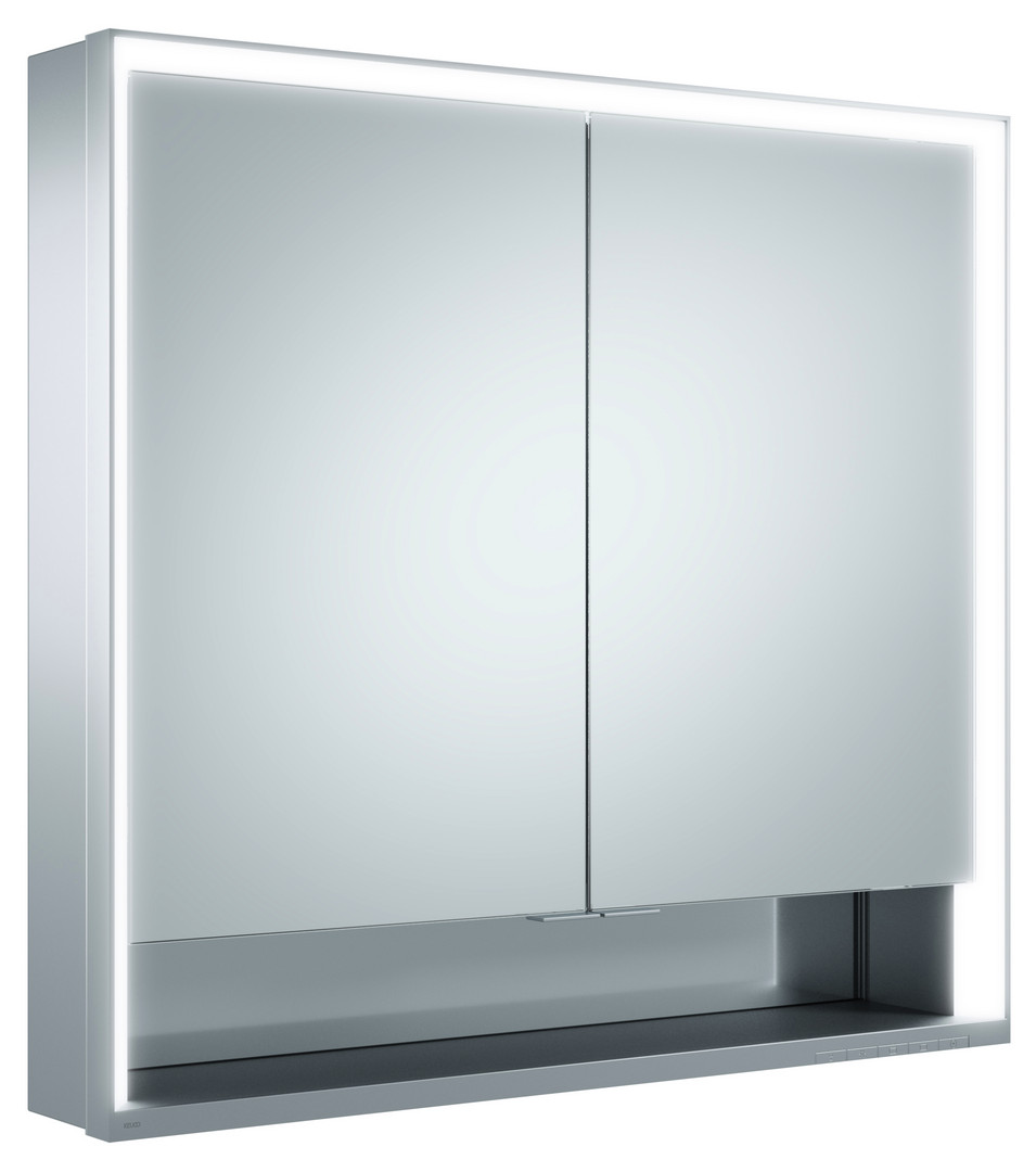 KEUCO Spiegelschrank kurze Türen Royal Lumos 80 x 73,5 x 13 cm, mit Ablagefach, Wandvorbau, 2-türig, silber-eloxiert W395621