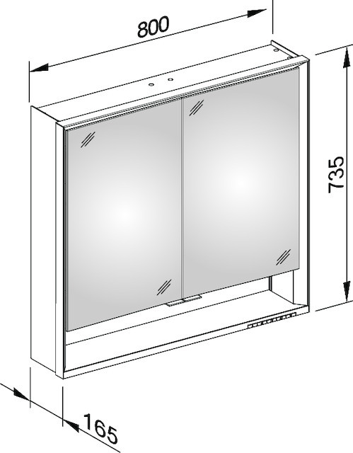 KEUCO Spiegelschrank kurze Türen Royal Lumos 80 x 73,5 x 13 cm, mit Ablagefach, Wandvorbau, 2-türig, silber-eloxiert W395621