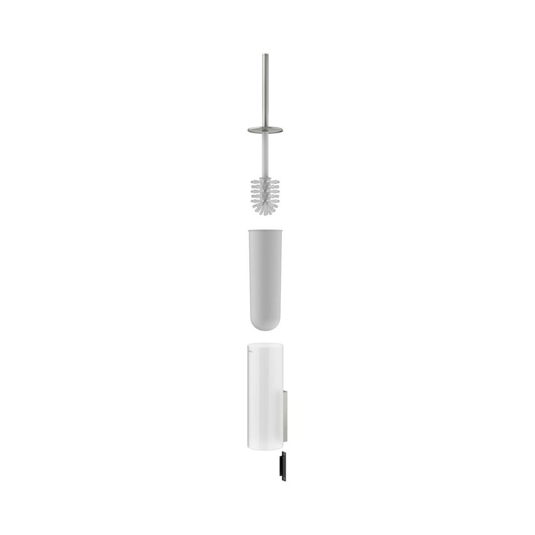 Bürste mit Deckel, herausnehmbarer Kunststoff-Einsatz, verdeckte Befestigung, zum Schrauben, mit Befestigungs-Set und Ersatzbürstenkopf