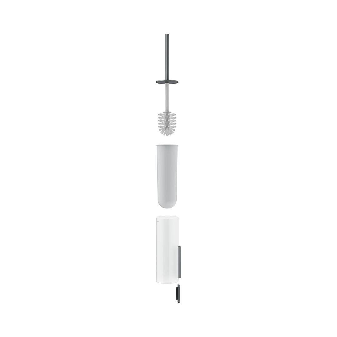 Bürste mit Deckel, herausnehmbarer Kunststoff-Einsatz, verdeckte Befestigung, zum Schrauben, mit Befestigungs-Set und Ersatzbürstenkopf