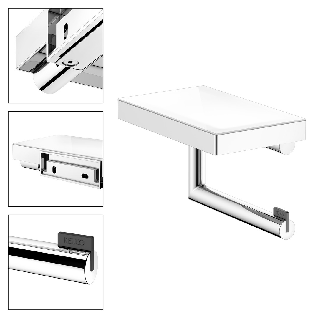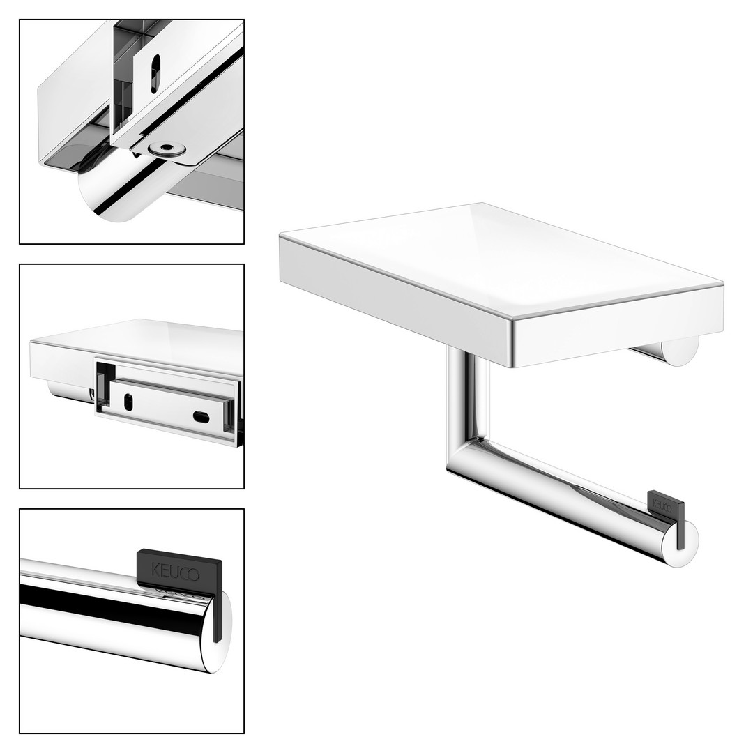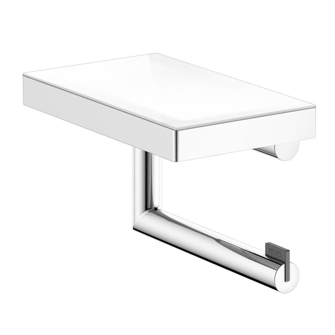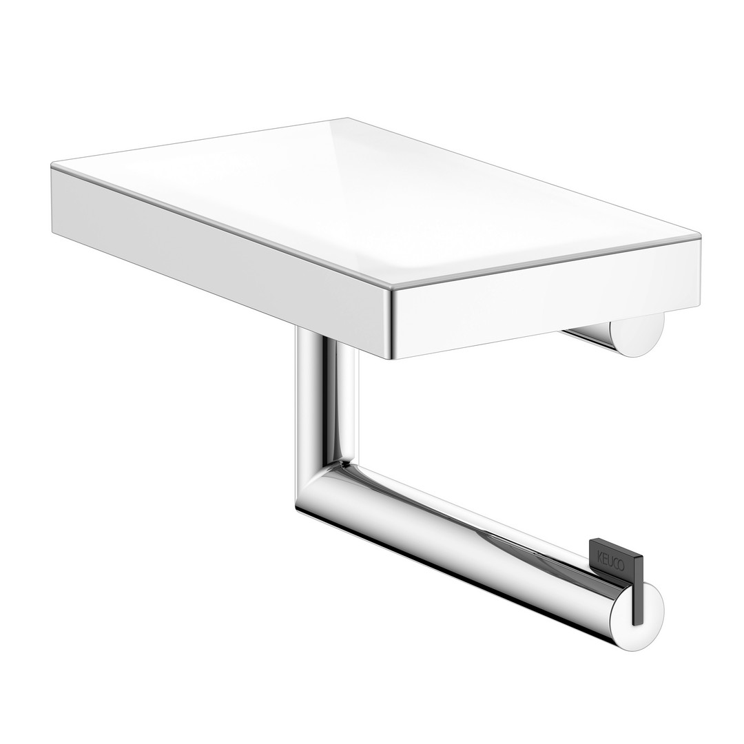 KEUCO Toilettenpapierhalter REVA verchromt, mit Glasablage, offene Form, Rollenbreite 100/120mm