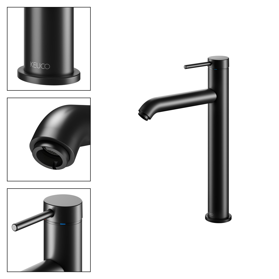 KEUCO Waschtisch-Einhebelmischer 210 IXMO Soft Ausladung 164mm, ohne Ablaufgarnitur, schwarz matt