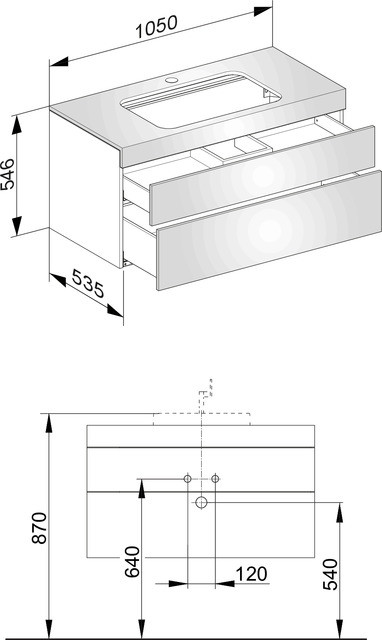 KEUCO Waschtisch-Unterschrank Edition 400 31572 105x54,6x53,5cm, 2 Auszüge, mit Hahnloch, Anthrazit/Anthrazit matt