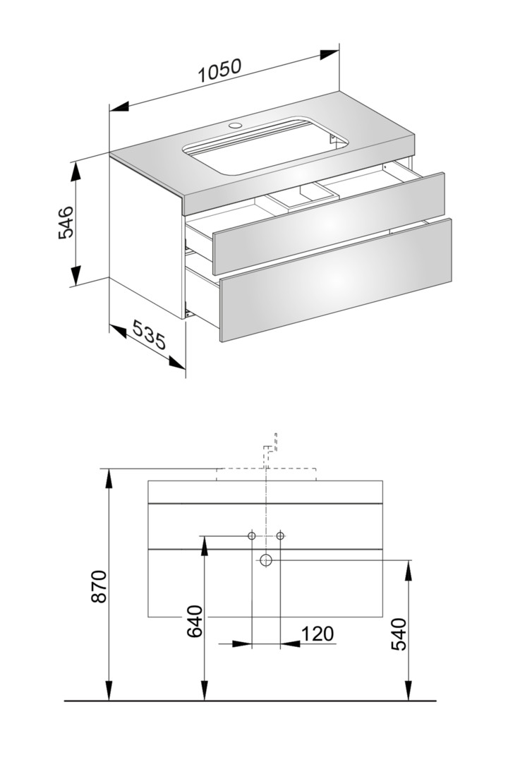 KEUCO Waschtisch-Unterschrank Edition 400 31572 105x54,6x53,5cm, 2 Auszüge, mit Hahnloch, Weiß/Anthrazit matt