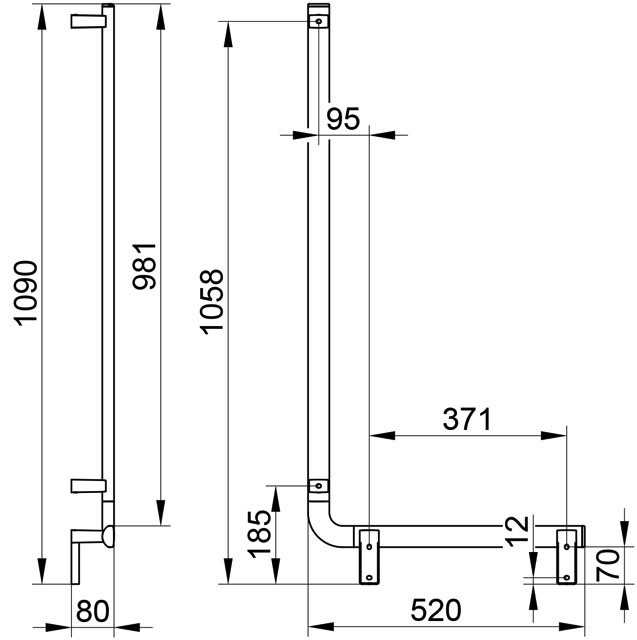 KEUCO Winkelgriff AXESS 90Grad, linke Ausführung, verchromt, 520 x 1090 mm, Aluminium silber-eloxiert/verchromt W359769