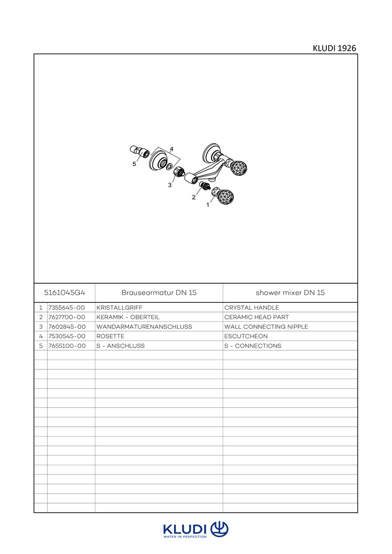 KLUDI 1926 Brause-Zweigriff-Armatur Kristallgriffe, vergoldet 23 kt W324742