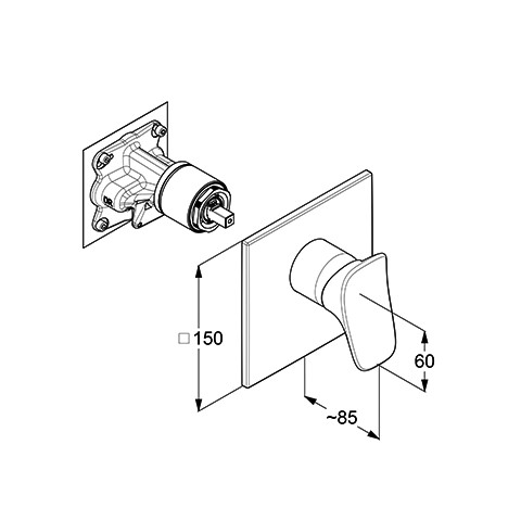 Feinbau-Set mit Funktionseinheit, geschlossener Hebel, Keramik-Kartusche mit Heißwasserbegrenzung, Durchflussmenge 28 l/min bei 3 bar