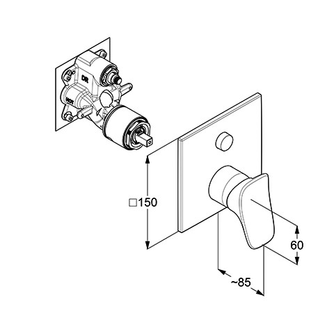 Feinbau-Set mit Funktionseinheit, geschlossener Hebel, Keramik-Kartusche mit Heißwasserbegrenzung, Durchflussflussmenge Wanne 25 l/min bei 3 bar, Durchflussmenge Brause 23 l/min bei 3 bar, automatische Umstellung Brause/Wanne, mit Druckumstellung PUSH & SWITCH, nach DIN EN 1717