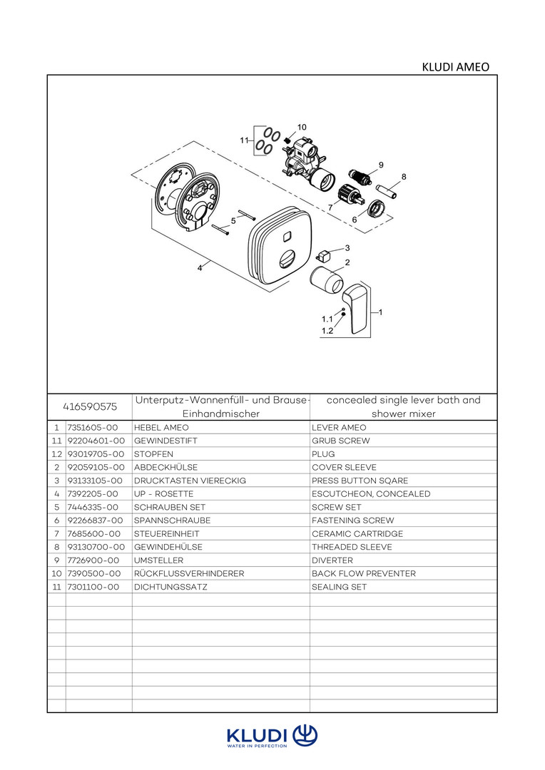 KLUDI Ameo Fertigmontageset UP-Wannenfüll- und Brause-Einhebelmischer, chrom