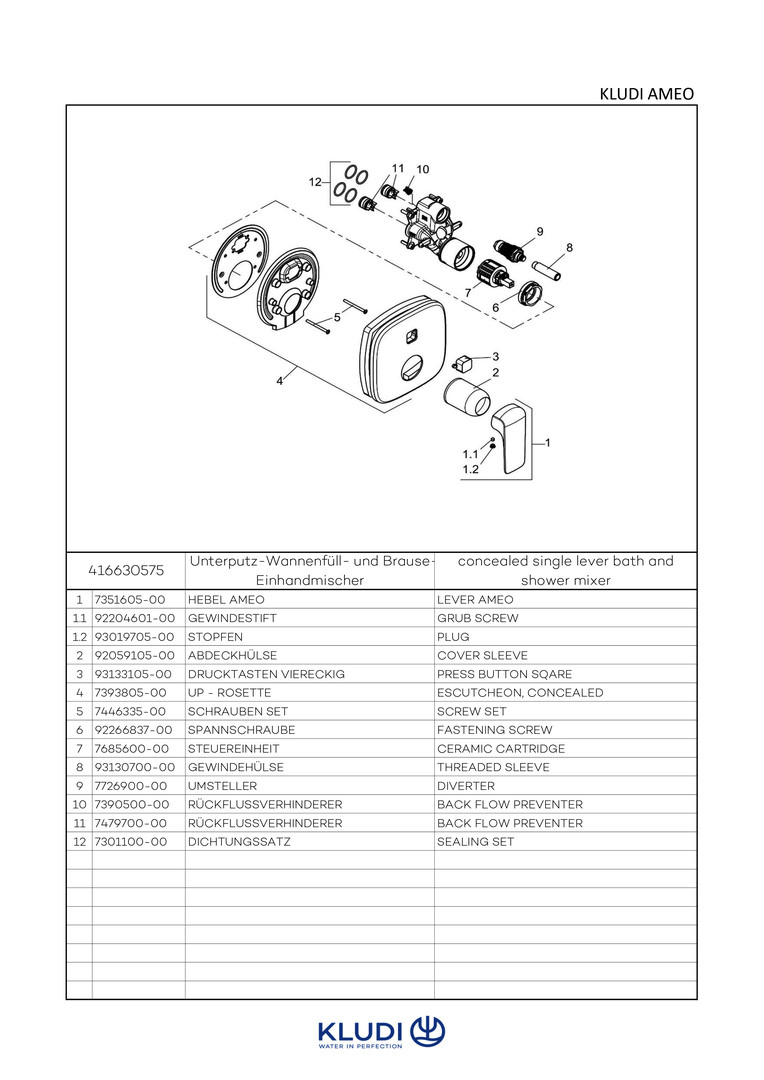 KLUDI Ameo Fertigmontageset UP-Wannenfüll- und Brause-Einhebelmischer, eigensicher gegen Rückfließen, chrom
