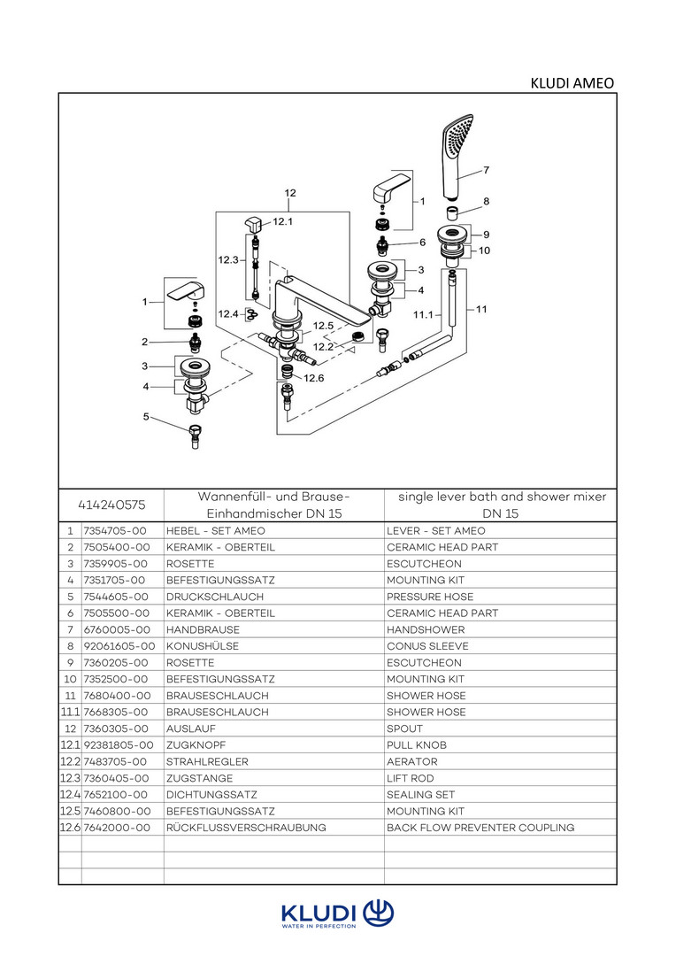 KLUDI Ameo Wannenfüll- und Brause-Einhebelmischer Vierloch-Fliesenrandmontage, chrom