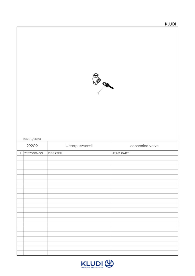 KLUDI Grundkörper Standard UP-Ventil, DN 15, G 1/2, Klassik-Oberteil, PA-IX 9923/I