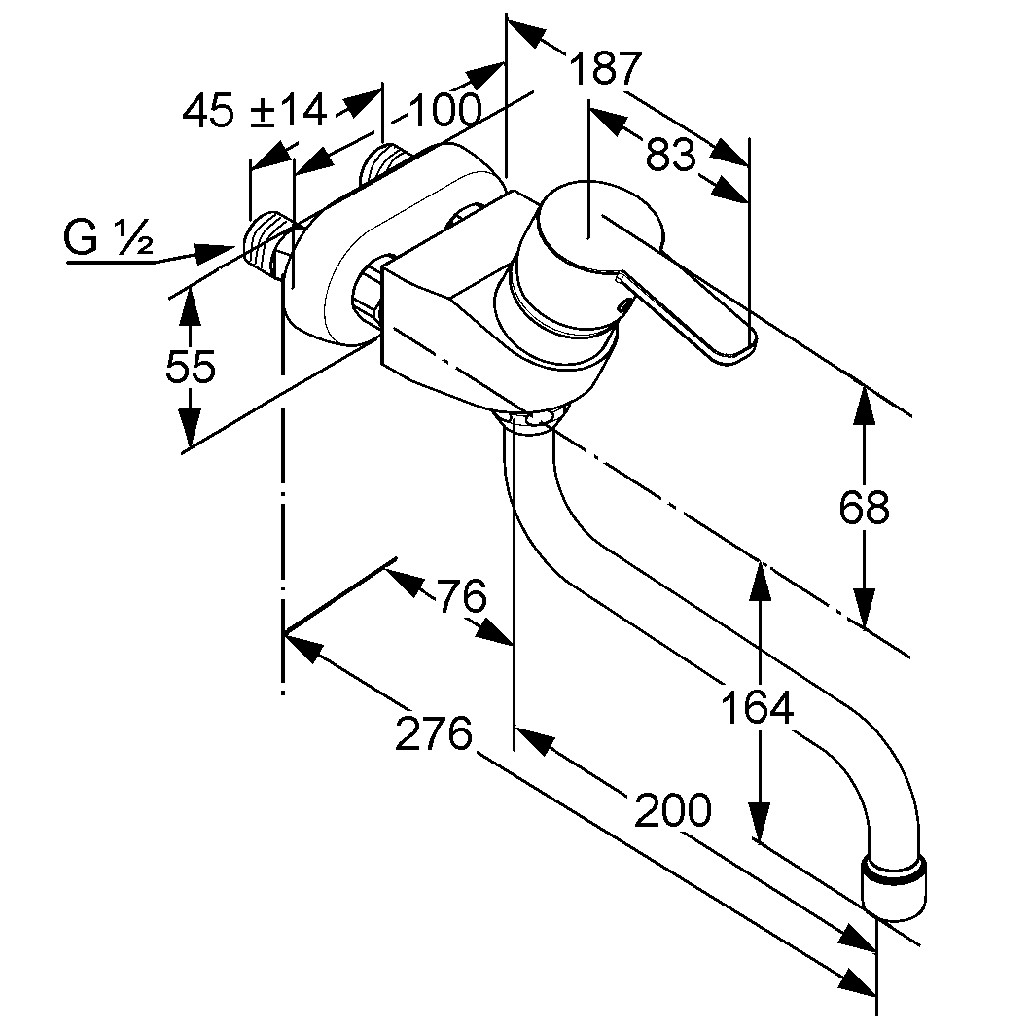 DN 15, Wandmontage, Durchflussklasse A, Luftsprudler M 22 x 1, Keramik-Kartusche mit Heißwasserbegrenzung, schwenkbarer (360°) Auslauf 200 mm, S-Anschlüsse G 1/2 x G 1/2, Geräuschklasse I