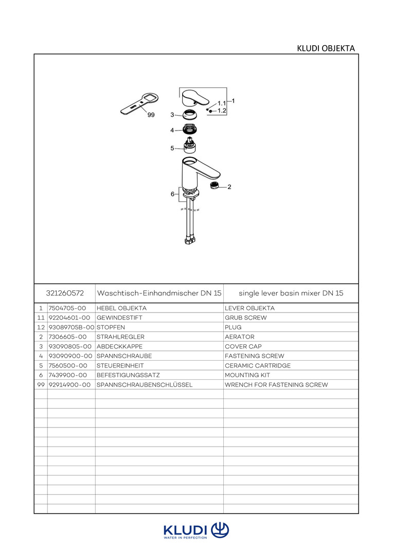 KLUDI Objekta Waschtisch-Einhebelmischer ohne Ablaufgarnitur, chrom