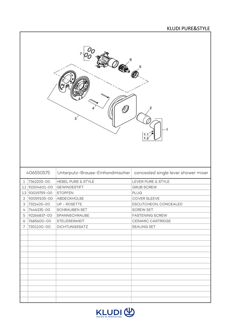 KLUDI PURE&STYLE Fertigmontageset UP-Brause-Einhebelmischer, Durchflussmenge 25 l/min, chrom