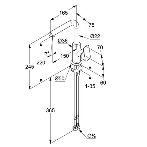 | Aufbauhöhe Unterkante Hahnauslass | 220 mm |